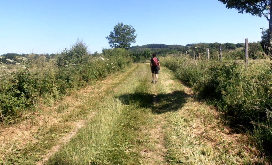 1 – Monter à gauche, puis à 30m à droite sur un chemin entre deux pâturages. A la jonction avec un autre grand chemin, descendre en face sur 100 m puis monter à gauche. A la D 413, continuer en face. Au croisement en T, prendre à droite sur 100 mètres jusqu’à un autre croisement.