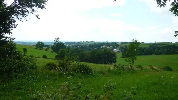 2 – Se diriger à gauche et encore à gauche à 50m. Descendre (en face vue sur la Vierge de Natzy) jusqu’à un chemin transversal et monter à gauche. A l’entrée du hameau de Juilles suivre la route goudronnée à gauche (fontaine). A 100m tourner sur le chemin à gauche et aller jusqu’à une route. La suivre à droite et virer sur le premier chemin à gauche dans la Prugne. Traverserle ruisseau (petit pont en rondins) et poursuivre jusqu’à un carrefour à l’orée d’un bois.