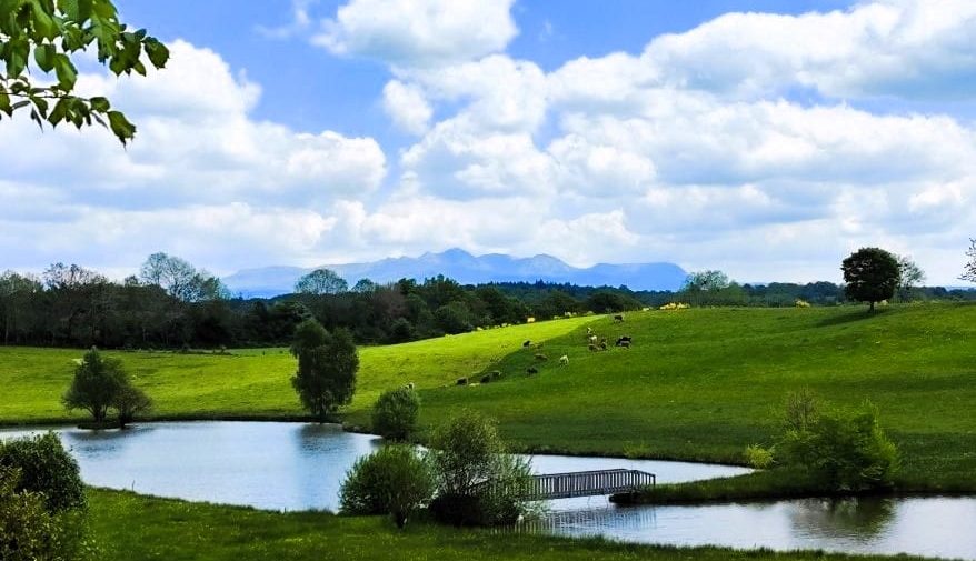 Chemin verdoyant varié et de superbes vues sur la face sud du Sancy avec les puys comme Roc de Courlande Redon Sancy Gros et Pailleret qui dominent le plateau de l’Artense Très belle vue sur le cirque de la Fontaine Salée et au loin on peut apercevoir les monts du Cantal.