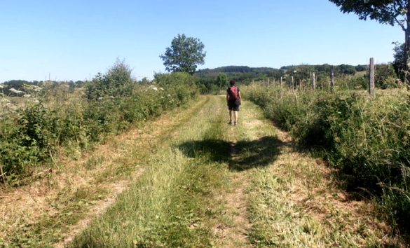 5 – Emprunter le chemin goudronné à gauche (vue sur la vallée de Cube, le clocher de Saint Gervais et le plateau des Combrailles). à la route, poursuivre à droite puis tourner sur le premier chemin à droite. Après 1 km, à la sortie d’un virage, bifurquer sur le large chemin à droite jusqu’à la petite route que l’on suit à gauche. Traverser une autre petite route et prendre le chemin en face. à la croix, couper la D 531 et continuer tout droit pour rejoindre Le Prat.
