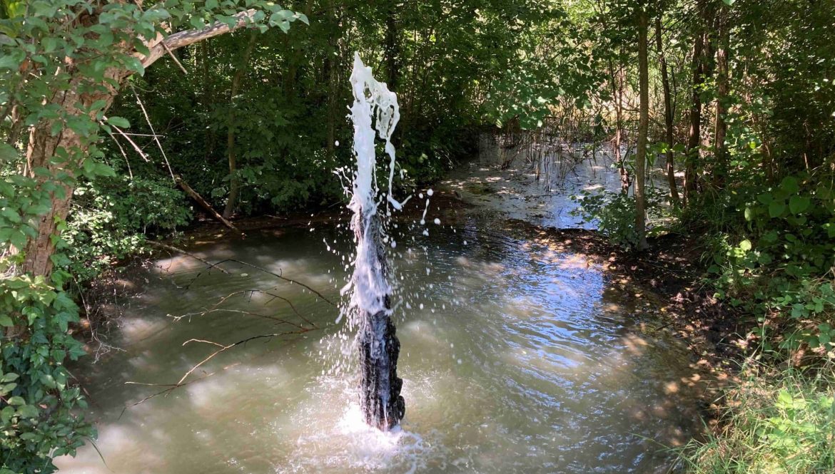 2 – Longer la rivière sur environ 300m (Source de l’Ile).Tourner à droite sur un petit sentier pour suivre le « Sentier du Geyser » (panneau d’information). Continuer sur ce sentier entre clôtures (source Brissac : Geyser), rejoindre un chemin goudronné et revenir à la route. La traverser pour monter le sentier situé à gauche de l’usine. Laisser les chemins à droite dans la montée. Arrivé au village, suivre la route à droite sur 15m et bifurquer sur une sente à gauche. Au T, tourner à gauche puis immédiatement à droite pour atteindre la Place de la Halle (vue sur le Sancy). Emprunter « Impasse des Forts », contourner l’église pour arriver à la « Grande Fontaine ». Monter à gauche « Rue de Saint Romain » et la suivre jusqu’à une fourche (panneaux indicateurs Puy Saint Romain)